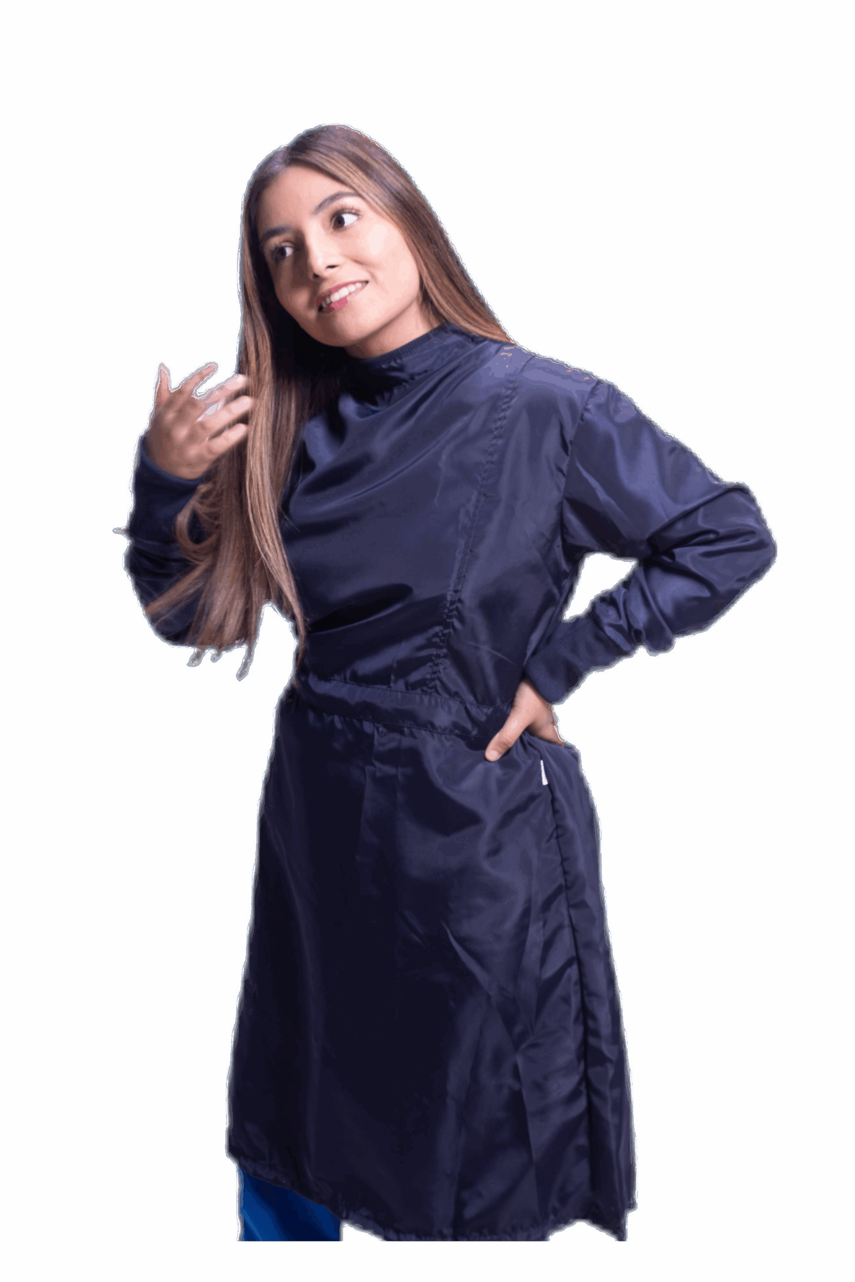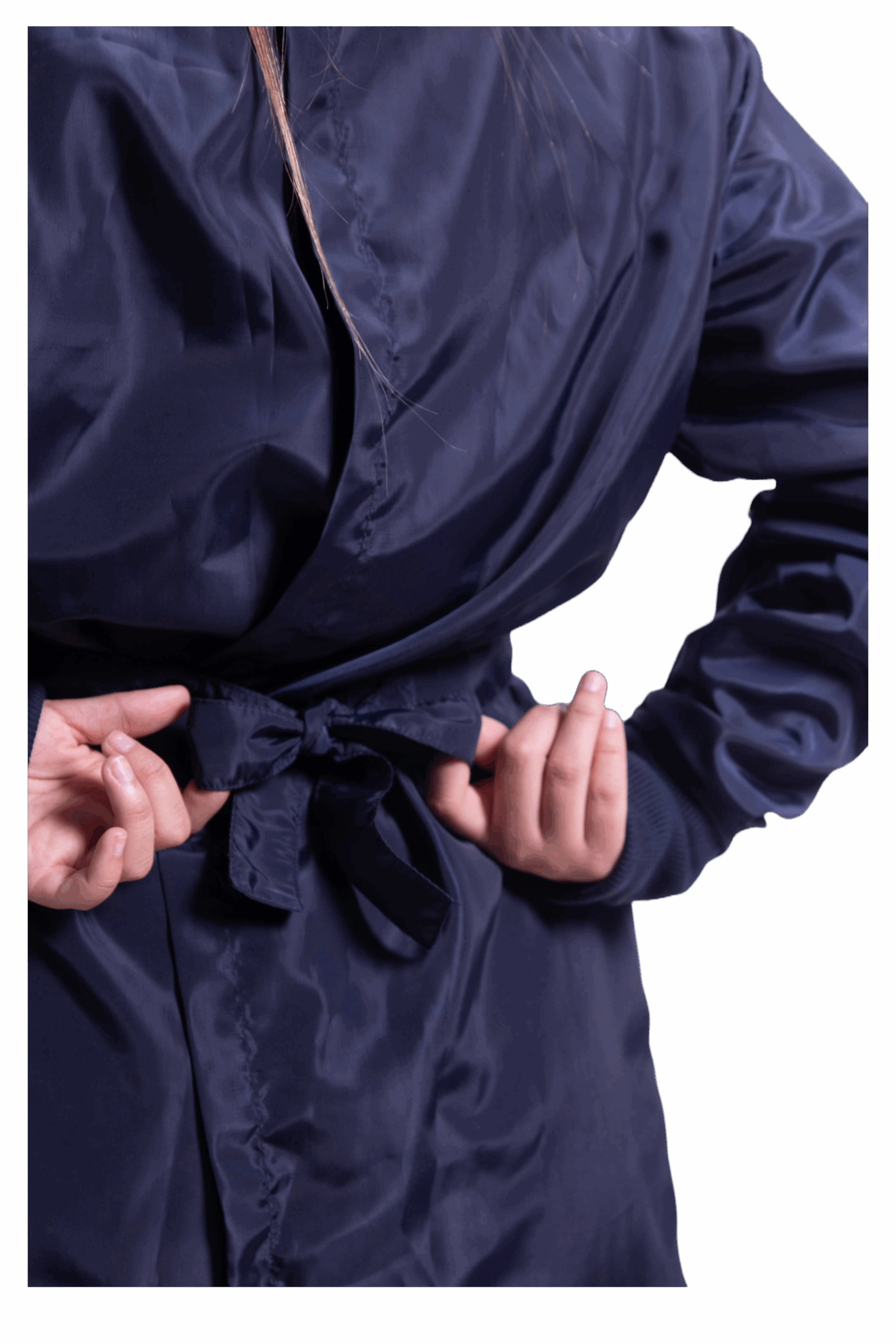 Bata antifluido con puño de elastico. Tiras de ajuste posterior y velcro en cuello. Viene con su bolsa para guardar.